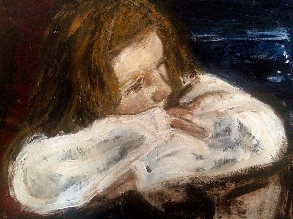 I’ve painted my daughter quite a few times. It used to fascinate me how she would sometimes go very quiet and just stare off into a fixed point. It seemed more intense than daydreaming. This painting was inspired by a photo I took in a McDonalds in Southgate. It’s painted in quite a romantic tradition to be based on an image taken in a fast food outlet, I realise. But I think I like the painting even more for that.