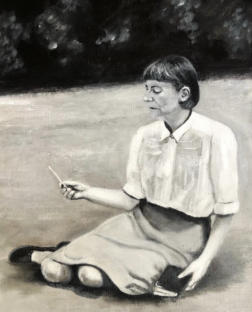 I’ve also painted two portraits of Stevie from stills from a BBC interview in 1965. Watching and listening to her I was struck by her enquiring mind, her intensity, her stoicism and her humour. The interview gives a sense of the disquieting and determined investigation of cruelty, despair and existential loneliness which is at the heart of much of her work.
