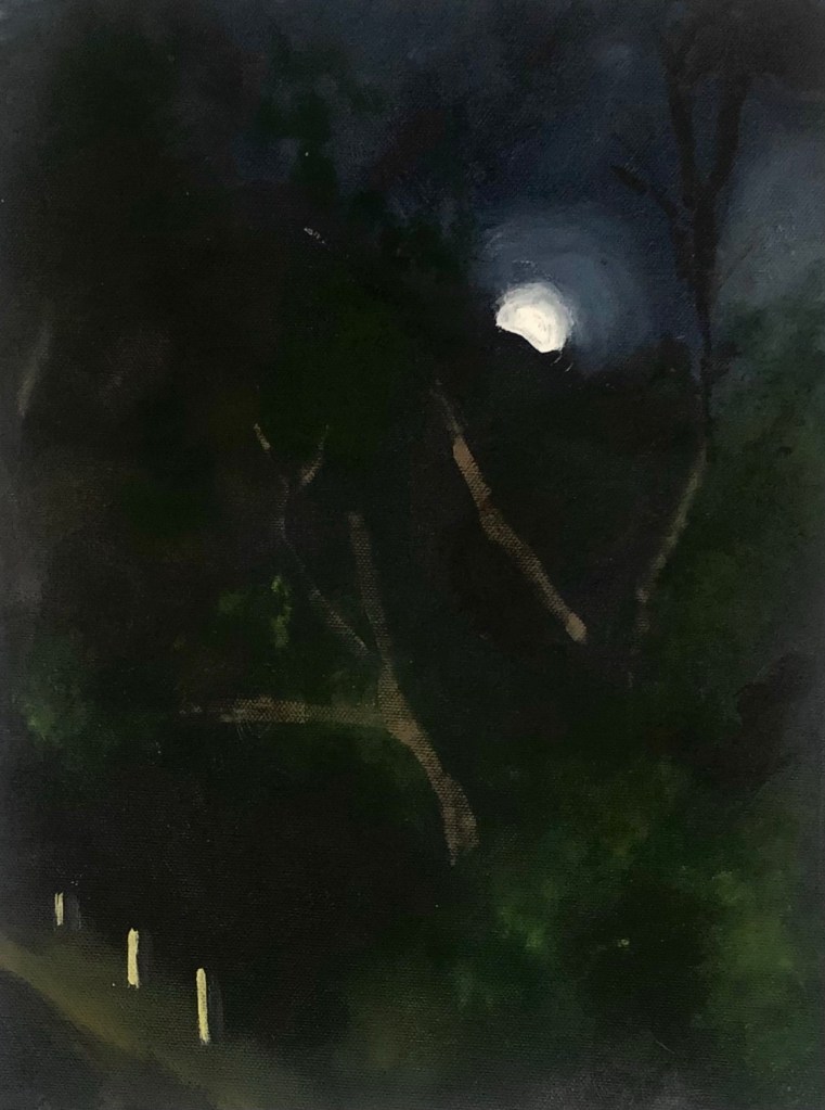 I’ve alluded to the moon in other paintings, for example Oscar Wilde loves the moon (2017), a portrait of Wilde which I titled after reading a quote by him: ‘With freedom, books, flowers and the moon, who could not be happy?’