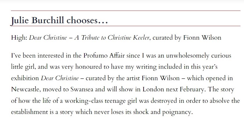 It’s wonderful to get a mention of ‘Dear Christine’ in this Guardian article by Rhiannon Lucy Cosslett, which looks at the reframing of Christine Keeler in light of the current BBC series ‘The Trial of Christine Keeler’. Read HERE.