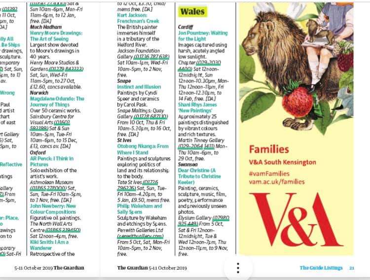 I’m delighted that ‘Dear Christine’ at elysium gallery, Swansea, was selected for The Guardian’s The Guide listings last week.